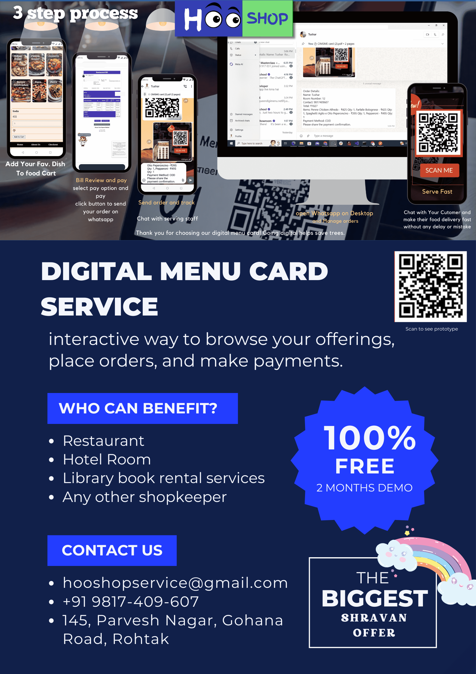 We're excited to introduce our Digital Menu Card Service with a special Shravan offer! For a limited time, get all benefits at just ₹2,500 with two months of free service. 🌟